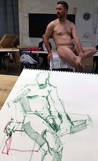 Pour les modèles masculins qui posent nus, le sexe est quasiment toujours visible à moins d’utiliser un tissu, et on n’a pas vraiment le choix. Si l’on est trop pudique, il ne faut pas choisir de poser comme modèle vivant.