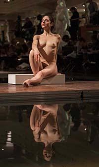Si la prestation le requiert (en fait presque toujours). Il faut penser que la plupart des tableaux de peintres célèbres représentent des personnages nus, et que donc ils ont utilisé des modèles vivants nus pour créer leur œuvre. Tous les artistes confirmés ont assisté à des séances de modèles vivants nus, et pratiquement toutes les écoles d’art sérieuses incluent ces séances. Donc il est parfaitement normal et admis (à l’exception de quelques pays totalitaires et rétrogrades) dans le cadre artistique de poser nu.